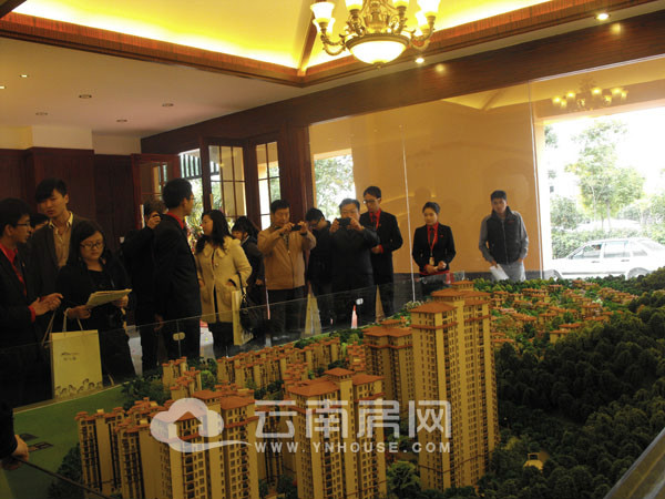 置業(yè)顧問為媒體和購房者講解項(xiàng)目情況