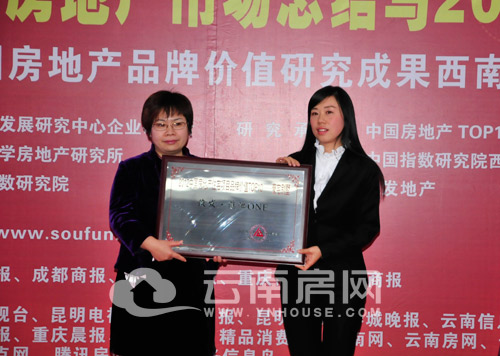 滇池one獲得“2012中國房地產(chǎn)住宅項目品牌價值TOP10——豪宅別墅”稱號