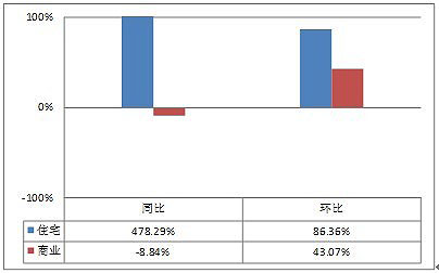 與10月相比,11月普通住宅和商業(yè)供應數(shù)量有所增加。其中,普通住宅供應2637套,較10月增加1222套,環(huán)比增長86.36%,同比增長478.29%,供應面積25.97萬㎡;商業(yè)供應196套,較10月增加59套。公寓供應90套,較10月減少689套。此外,本月市場無寫字樓、別墅與產(chǎn)權式酒店供應。