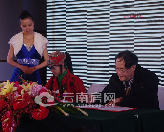 主持人:接下來(lái)有請(qǐng)昆明金果商貿(mào)有限公司陶貿(mào)紅(音)先生,上臺(tái)簽約,有請(qǐng)。