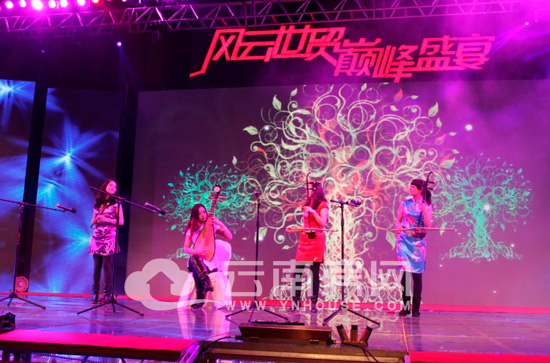 她們?nèi)渴且恢雨?duì)伍,是近幾年在我們云南演藝市場上非;钴S的一支組合,接下來她們將為您送上的是新民樂的演奏,首先您將欣賞到的是《勝利輝煌》,預(yù)祝大家在新的一年里事業(yè)飛黃騰達(dá),旗開得勝,馬到成功!