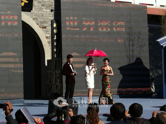 今天下午活動的高潮部分,無疑是著名影星范冰冰的出場。以往參加活動多是站足10分鐘極告走人的范爺,今日卻早早侯在嘉賓席,冒著大理毒辣的太陽,坐足一個半小時,并全程面帶微笑,與左右交談甚歡。下午大概3點鐘左右,伴隨著全程的呼喊聲,范爺優(yōu)雅亮相,頃刻迎來不小的騷動。作為大理密灣傾力邀請到的重量級嘉賓,范冰冰現(xiàn)場回憶了自己與大理的淵源,并笑言打算置業(yè)大理密灣旅游文化小鎮(zhèn),與導演張揚“后院挨后院”。隨著范冰冰、恒豐祥集團領導以及到日到場嘉賓共同為大理密灣旅游文化小鎮(zhèn)點睛、剪裁之后,恒豐祥·大理密灣旅游文化小鎮(zhèn)全球啟幕儀式也告一段落。