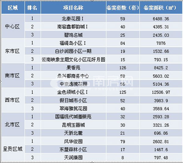 本周備案前三槍分別位于南市區(qū)、西市區(qū)和東市區(qū),排名順序?yàn)椋汗阍贰⒔鹕I(lǐng)域小區(qū)Ⅰ與福緹島小區(qū)Ⅰ。