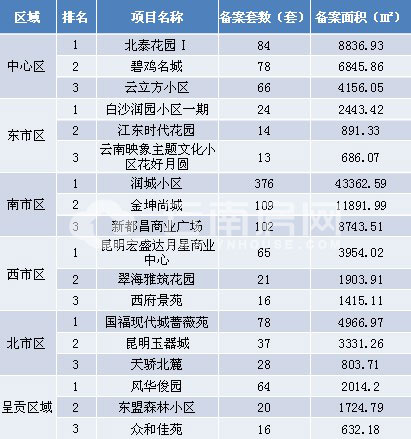 本周備案前三強(qiáng)均位于南市區(qū),排名先后順序為:潤城小區(qū)、金坤尚城和新都昌商業(yè)廣場。注:由于備案系統(tǒng)未公布成交金額,故備案金額暫時空白。