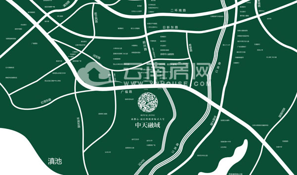 中天融域位于廣福路與前興路交匯處,廣福路是連接昆明舊城區(qū)和呈貢的新區(qū)的主干道,而前興路、官南大道、青年路與環(huán)線交通交叉,將項目與昆明主城區(qū)緊密聯(lián)系起來。