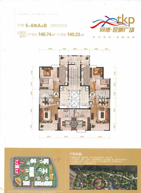 146.74平米的A戶型和140.23平米的B戶型