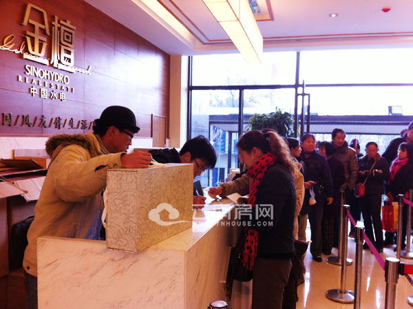 上午9點(diǎn)半左右,中國水電金檀售樓部內(nèi)已經(jīng)排起了長隊(duì)。據(jù)項(xiàng)目相關(guān)負(fù)責(zé)人介紹,“今日本來項(xiàng)目將舉行老客戶答謝會,并同時開放園林樣板園區(qū),但因昨日下雨的原因,園區(qū)內(nèi)還有一些結(jié)尾工作需進(jìn)行,故樣板園區(qū)需過兩天才能開放。馬上就到新春佳節(jié),為感謝老客戶的一貫支持,今日就在售樓部為老客戶送上碗具和茶具等禮物,答謝老客戶。下周末,也就是1月19日,項(xiàng)目即將針對之前辦理過認(rèn)籌卡的客戶舉行選房活動。正式開盤預(yù)定為春節(jié)過后。目前項(xiàng)目均價8500元/平米,購房優(yōu)惠從1%—4%不等。目前項(xiàng)目已完全封頂!