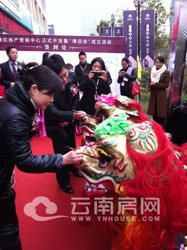 上午10:00,營銷中心開發(fā)儀式正式開始。在醒獅表演完之后,博欣地產(chǎn)相關(guān)領(lǐng)導(dǎo)分別為醒獅點(diǎn)睛,并用紅酒灌滿“博智者歡”的透明水晶器皿,寓意吉祥、財(cái)運(yùn)以及開門大吉。隨著營銷中心門頭大彩球被拉開,博欣地產(chǎn)營銷中心正式開放。在今天上午的活動(dòng)上,博欣地產(chǎn)“博欣會(huì)”(全稱為“云南博欣房地產(chǎn)開發(fā)有限公司客戶會(huì)”)也正式揭牌。未來,該組織除為業(yè)主提供對(duì)口服務(wù)外,參加該客戶會(huì)的業(yè)主,還將享受額外的購房優(yōu)惠等待遇。