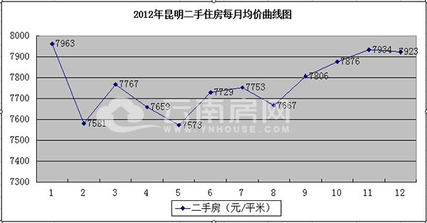 2012年昆明二手房年報:二手住宅成交均價7769元/平 租房均價19元/平