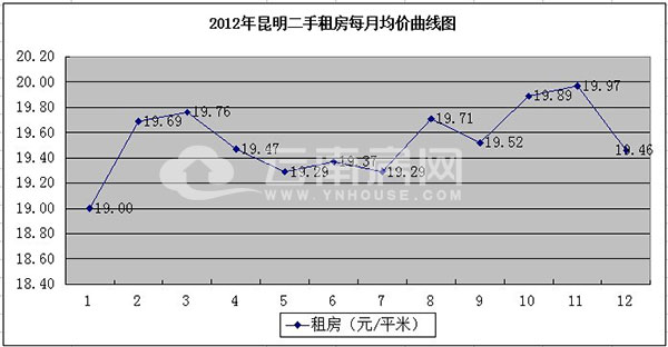 據云南房網統(tǒng)計數據顯示,2012年昆明二手租房的月租金在12——28元/平米之間,以18——28元/平米的月成交租價為主,全年平均租金為19.54元/平米。新亞洲片租金最低,年平均租金價格不足15元,金星片、新迎片、金色片、關上片、金碧片、吳井片、翠湖片等片區(qū)租金較高,均在20元/平米以上。此外,2012年昆明二手租房也呈現出單個片區(qū)每月租金波動大的現象。