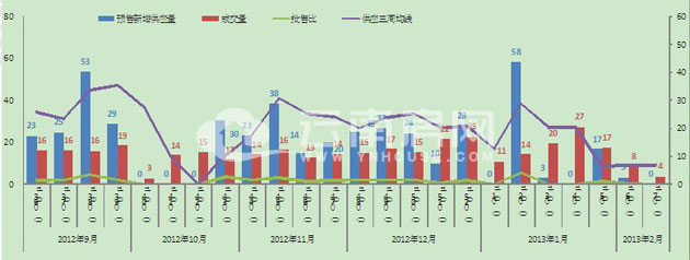 第6周市場新增供應3.24萬方,成交8.2萬方,批售比為0.4;