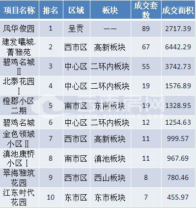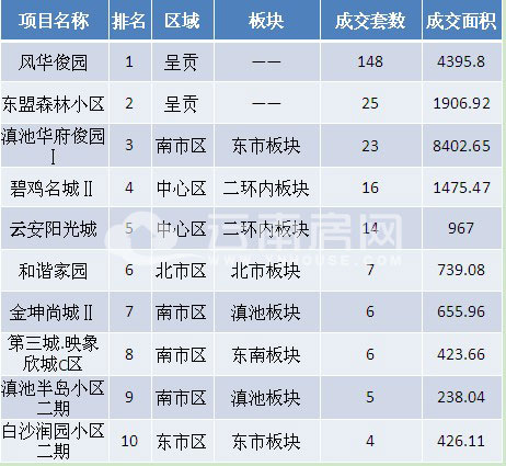 本周備案前三強(qiáng)分別位于呈貢、西市區(qū)與中心區(qū),排名先后順序?yàn)椋猴L(fēng)華俊園、建發(fā)曦城.菁雅苑和碧雞名城II。注:項(xiàng)目top10排名僅做參考。