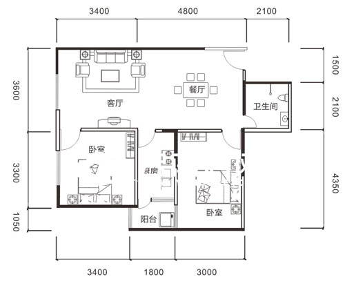 80平米的A2-2為兩室兩廳設(shè)計,進門便是客廳、餐廳,給人的感覺還不錯,而且2個臥室以及廚房都是直接從客廳進入,沒有過道連接,節(jié)省了空間。事物往往都具有兩面性,在節(jié)省空間的同時,也忽略了家具的擺放了,從戶型圖上看,該戶型的電視只能安裝在大臥室的墻體上,對主人的休息可能會造成一定的影響;且廚房夾雜主臥室與次臥室之間,次臥室需要從與廚房連接的生活陽臺采光,可能會對次臥室的采光造成一定影響。而公衛(wèi)的設(shè)計想必很多人也都不會滿意。