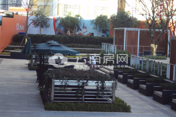 萬科金域國際營銷中心側(cè)面的休憩區(qū)