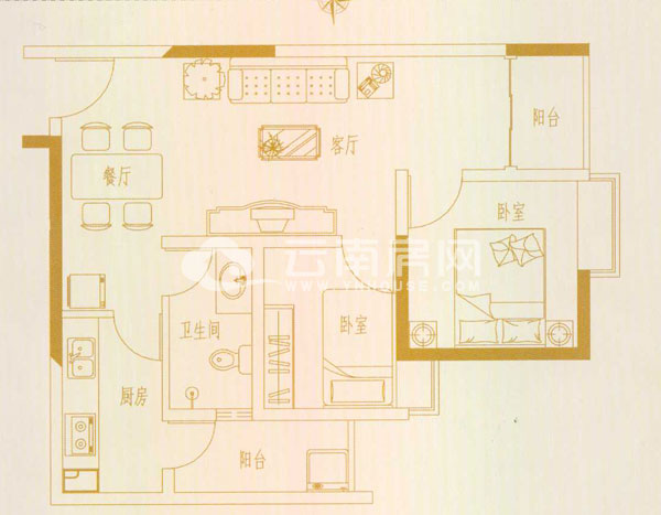 總體而言,該戶型的布局較為緊湊,從戶型圖上可以看出,兩個陽臺的面積并不小,可以對其加以利用;缺點便是,客廳有一定的浪費空間,且廚房只能從陽臺采光。