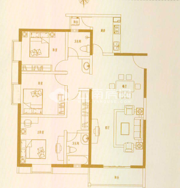 總之,該戶型的優(yōu)點在于布局緊湊,功能區(qū)完善,兩個衛(wèi)生間均為明衛(wèi),缺點便是廚房采光不好,其中一個陽臺面積太小,僅能充當采光源。