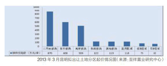對于3月土地市場,至祥置業(yè)研究中心指出,2013年3月擬供應土地集中于空港、呈貢和滇池三個板塊,根據(jù)公布的地塊信息來看集中成片供應的可能性較大,將推動高總價的出現(xiàn),而在供應面積較小的區(qū)域,比如二環(huán)內區(qū)域又由于單價價格,將推動總價的提升。對于中小企業(yè)拿地而言,無疑是不小的挑戰(zhàn),在這一市場環(huán)境下應該更加關注自身資金實力的衡量,尋找其與項目周期之間的資金平衡點,快進快出。