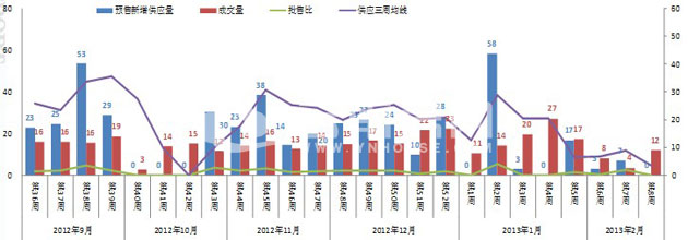 本周房地產(chǎn)市場無新增供應(yīng);房地產(chǎn)市場成交12.11萬方,批售比為0。
