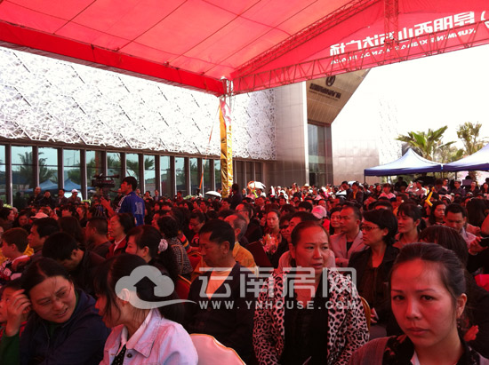 今天下午1:30,云南房網(wǎng)到達位于西山區(qū)前新路東側(cè)的昆明西山萬達廣場銷售中心,現(xiàn)場早已被到場嘉賓和過往市民圍得水泄不通,有排隊領(lǐng)抽獎券的,有排隊領(lǐng)氣球動物的,有圍觀現(xiàn)場表演的,有圍觀車模的……而進入銷售中心,偌大的沙盤前圍著許多一對一咨詢、登記的客戶,而進入樣板房區(qū)的玻璃門,雖有指示牌指引,但卻緊鎖著大門,等待開放儀式的啟動。