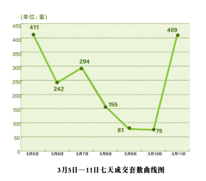 來自昆明市房產(chǎn)信息網(wǎng)統(tǒng)計數(shù)據(jù)顯示,3月5日至3月11日七天,昆明主城四區(qū)及呈貢新區(qū)共成交各類商品住房1667套,日均成交套數(shù)為238套,其中單日成交最高為3月5日的411套,最低出現(xiàn)在3月10日,為75套,相較于上一個交易統(tǒng)計周期,此次成交套數(shù)略微增加31套,環(huán)比漲幅1.9%。與成交套數(shù)不同,成交面積方面則小幅下跌。統(tǒng)計數(shù)據(jù)顯示,這一周的總成交面積為13.34萬平方米,環(huán)比降幅為2%。從此次的交易排行榜可以看出,近期剛拿到預(yù)售證的樓盤是該星期昆明樓市成交數(shù)據(jù)的主力軍。以這一周的頭兩天為例,3月5日,碧雞名城Ⅱ以2082.45平方米的銷售面積居當(dāng)日成交面積第一,而眾和東苑以1066.75平方米位列第二名。3月6日,眾和東苑銷售22套的成績,位列成交套數(shù)排行榜頭名,而與此同時碧雞名城Ⅱ則以18套的成交量居第二名。并且,在多個單日成交偏高的成交數(shù)據(jù)中,碧雞名城Ⅱ等項目的排名都會比較靠前。