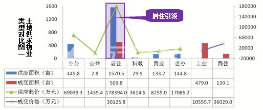 土地供應(yīng)類型較多,以居住用地為主;土地成交僅居住、工業(yè)和商住類型,仍以居住用地為主。