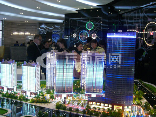 沙盤右側(cè)最高的建筑為保利六合寫字樓