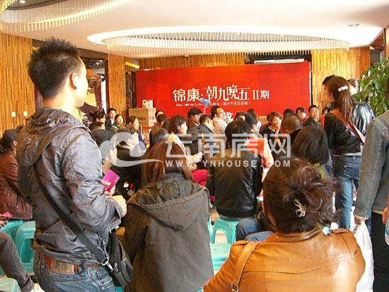 朝九晚五今日開盤,營銷中心內(nèi)擠滿了人。