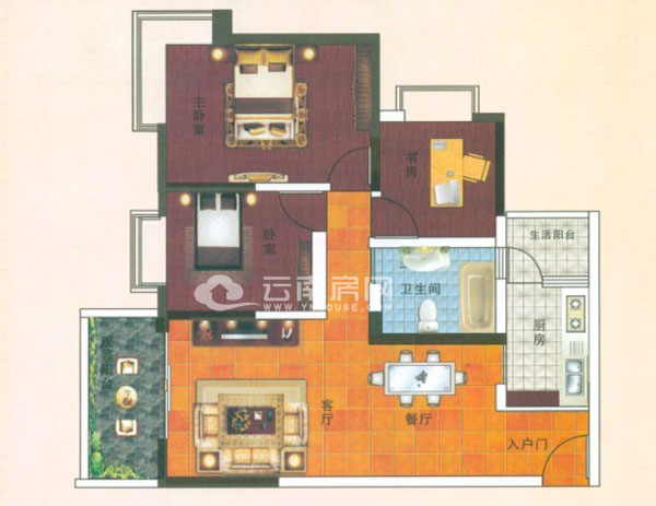 C-1戶型建筑面積89.74平米,為3室2廳1廚1衛(wèi)雙陽(yáng)臺(tái)戶型。此戶型為三室兩廳全明設(shè)計(jì),緊湊實(shí)用;餐廳與廚房緊密相連,動(dòng)線設(shè)計(jì)合理,方便就餐;三間臥室均帶獨(dú)立飄窗,增加空間使用面積;自帶生活陽(yáng)臺(tái),便于平時(shí)生活;但衛(wèi)生間沒(méi)有采光,影響光線和通風(fēng)。
