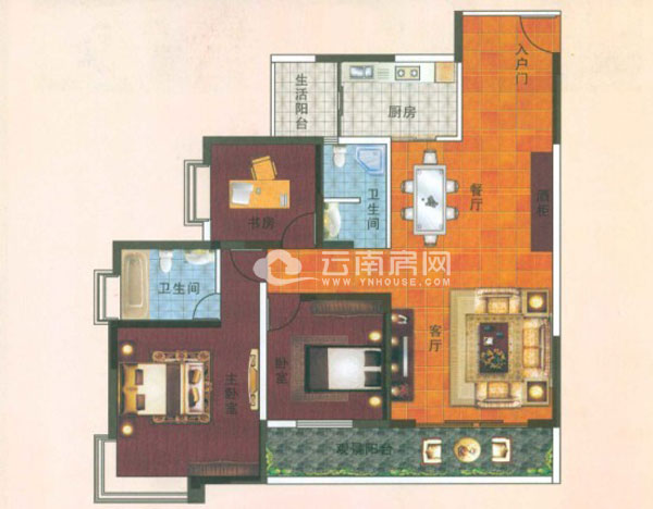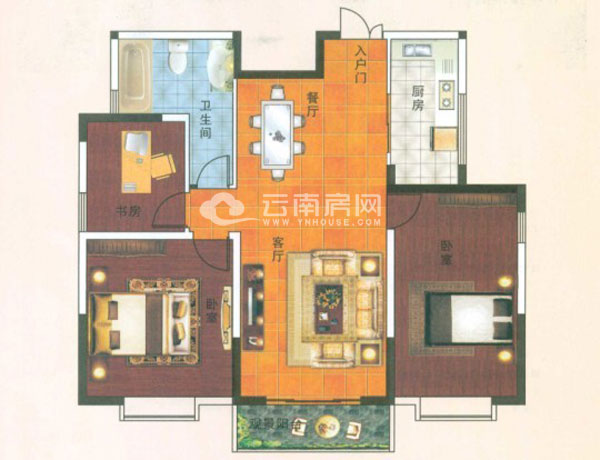 C3-1戶型建筑面積127.68平米,為3室2廳1廚2衛(wèi)雙陽臺(tái)戶型。此戶型的三間臥室與餐廳客廳均是全明設(shè)計(jì),且客廳語氣中一間臥室通過一個(gè)聯(lián)通的景觀陽臺(tái)相連,增加了景觀面和室內(nèi)空間;主臥自帶一間衛(wèi)生間,保證業(yè)主私密性;廚房與生活陽臺(tái)相連,便于平時(shí)生活;但此戶型的獨(dú)立衛(wèi)生間沒有采光面,且位于餐廳與客廳所在的房屋內(nèi)部空間中,影響通風(fēng)和采光。