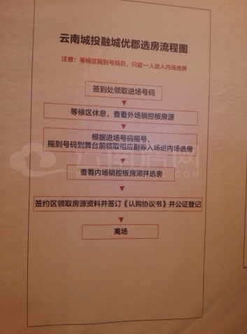 購房客戶進(jìn)場后先到該表前了解房源的情況,然后將意向房源的信息填入“意向選房單”,選房單共設(shè)置6空,抽號前臺上的主持反復(fù)提醒購房客戶盡量選擇3套以上的意向房源,以保證選房購房的有效和準(zhǔn)確。