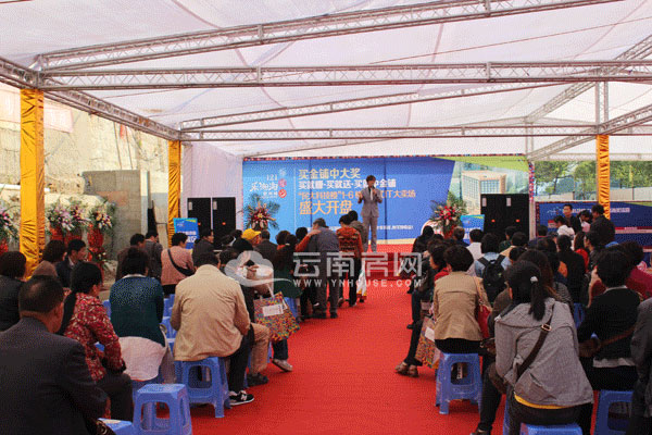 上午9點(diǎn),云南房網(wǎng)小編到達(dá)項(xiàng)目開(kāi)盤(pán)現(xiàn)場(chǎng)。此時(shí)工作人員正在進(jìn)行現(xiàn)場(chǎng)最后的布置工作,擺花籃、調(diào)整座椅擺放位置……客戶簽到區(qū)已經(jīng)陸續(xù)有客戶簽到進(jìn)場(chǎng)等候。配合著背景音樂(lè),主持人已在臺(tái)上向到場(chǎng)客戶介紹著今日開(kāi)盤(pán)的各項(xiàng)事宜。
