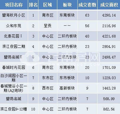本周備案前三強(qiáng)分別位于南市區(qū)、成功與中心區(qū),排名先后順序為:碧海秋月小區(qū)、眾和東苑和北泰花園I。注:由于備案系統(tǒng)公布數(shù)據(jù)局限,項目top10排名僅做參考。