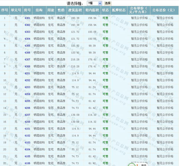 譽(yù)峰峰景花園(D區(qū))7棟準(zhǔn)售房源