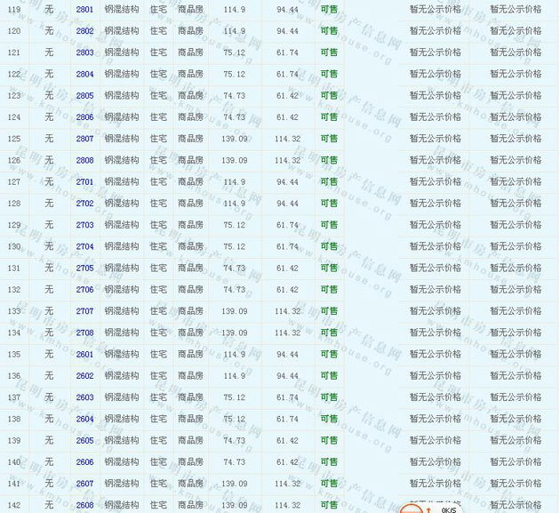 譽(yù)峰峰景花園(D區(qū))商品住房的準(zhǔn)售房源