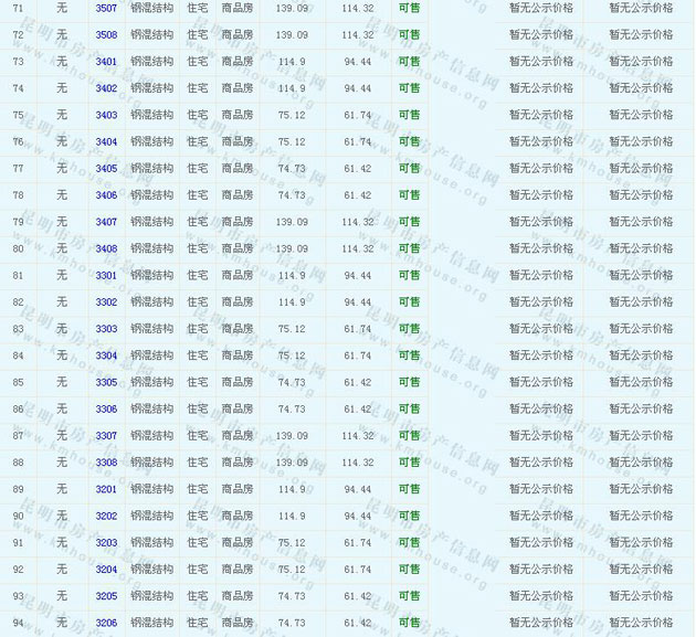 譽(yù)峰峰景花園(D區(qū))商品住房的準(zhǔn)售房源