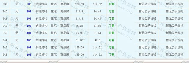 譽(yù)峰峰景花園(D區(qū))商品住房的準(zhǔn)售房源