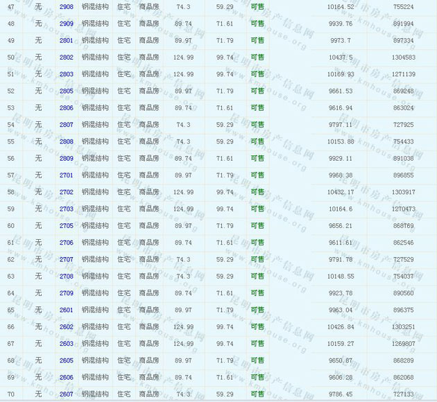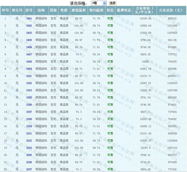 根據(jù)云南省物價局關于發(fā)布《云南省商品房銷售明碼標價實施細則(試行)》的通知,現(xiàn)將該項目商品住房的準售房源及每套房屋價格向社會公布,房地產(chǎn)開發(fā)企業(yè)應嚴格按照公布價格,商品房銷售明碼標價實行一套一標。商品房經(jīng)營者應當對每套商品房按照建筑面具進行明碼標價,否則,房產(chǎn)登記機關不予登記備案。準售房源及房價信息如下: