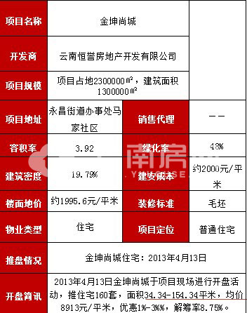 金坤尚城開盤分析:均價8913元/平米 銷售率8.75%