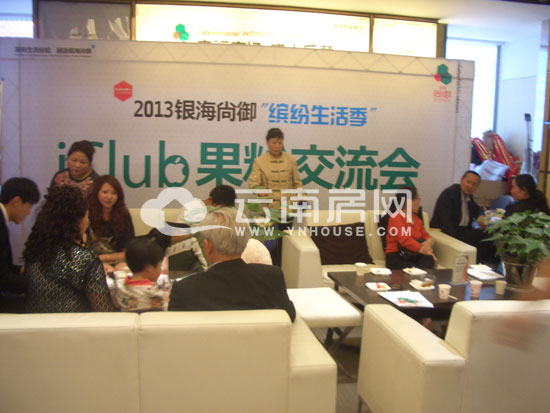 下午1:30,當云南房網(wǎng)的小編到達銀海尚御售樓部的時候,看到工作人員們正在精心布置會場,售樓部里入口處大廳是銀海尚御的沙盤所在地,雖然這個周末銀海尚御并未舉行任何開盤活動或者樣板間開放活動,但是看房的客戶依舊不少,置業(yè)顧問們站在沙盤前認真地為顧客們做著詳細的講解。沙盤的正前方,工作人員們?yōu)榭捶康目蛻艉徒裉旒磳⒓印癷Club果粉會”活動的嘉賓們準備了可口的糕點和爽口的果汁。沙盤的左側(cè),便是今天的“iClub果粉會”活動區(qū)。