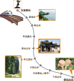 隨著云南玉蒙鐵路5月1日正式開通客運(yùn),往返于昆明和蒙自之間的旅客又多了一種方便、舒適、快捷的出行方式,同滇越鐵路相比,列車速度提高一倍以上。玉溪和蒙自之間只需1小時(shí)37分,終結(jié)了“火車沒有汽車快”的歷史。