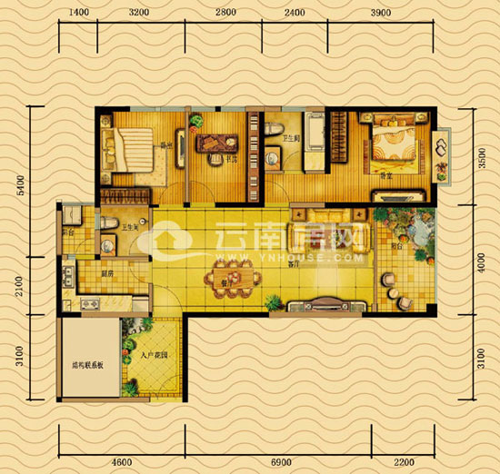 總之,該戶型最大的優(yōu)點(diǎn)便是,明廚明衛(wèi),且結(jié)構(gòu)聯(lián)系板緊挨著入戶花園,可加以充分利用,打造成一間小臥室。而缺點(diǎn)則是餐廳的空間利用率較低,有一定的浪費(fèi)空間。