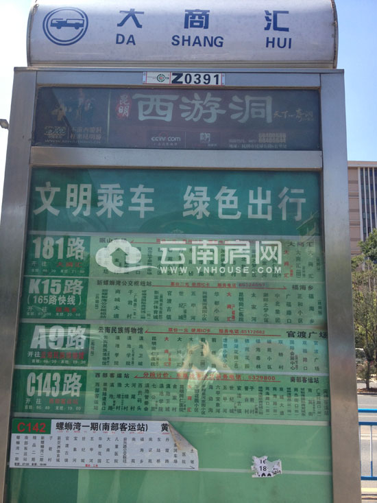 生活在昆明這樣一個四季入春的城市,溫度的舒適讓人面對不打一聲招呼就來的夏天,有些許煩躁。而正是害怕下午時分會熱得受不住,小編早早的就踏上了前往中天融域踩盤的路。在青年路的金鷹購物中心乘坐129路,從青年路直行,公交車便行駛在南壩路男和官南大道,從日新路轉(zhuǎn)入希望路,途徑前往路,到達(dá)前行路,大約30分鐘,便到達(dá)了廣福路與前興路的交匯處,也就是項(xiàng)目的所在地。公交車牌清楚顯示,途徑中天融域的公交車除了129路之外,還有181、K15、A9、24、78、K9等等。