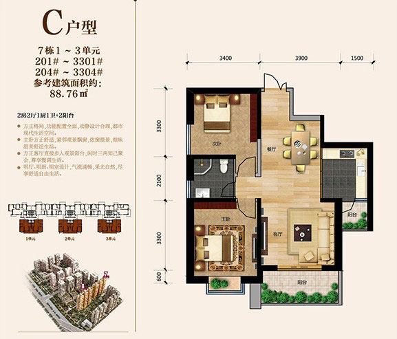 以88平米的經(jīng)典兩房為例。2室2廳1廚1衛(wèi)2陽臺(tái)設(shè)計(jì),戶型格局方正,功能配置全面,動(dòng)靜設(shè)計(jì)合理;主臥飄窗設(shè)計(jì),緊鄰觀景陽臺(tái);餐廳客廳相連,南北通透,客廳連接觀景陽臺(tái),開闊大氣;名廳名廚名衛(wèi)明室設(shè)計(jì),氣流通暢,客廳主臥廚房朝南,光照充足。