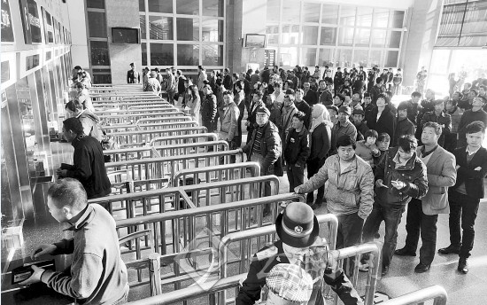 曲靖火車站購(gòu)票乘客排起長(zhǎng)隊(duì)劉筱慶攝
