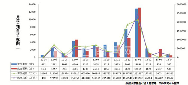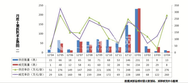 4月昆明成交土地受3月供應(yīng)影響成交量不大,但土地供求均價呈現(xiàn)大幅的提高,總體表現(xiàn)出上升的成交勢頭。