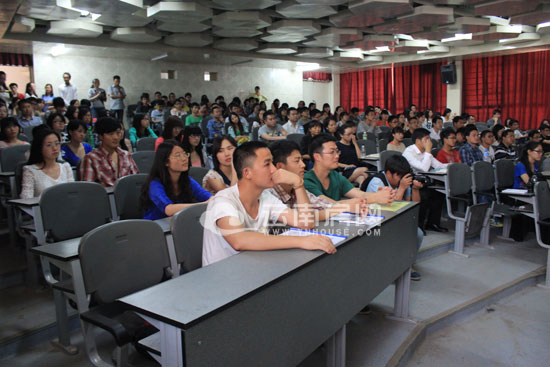 今日(5月15日)下午兩點(diǎn)三十分,此次招商地產(chǎn)校園行首站舉辦地點(diǎn)——云南大學(xué)本部英華園北學(xué)樓,可容納近三百人的103階梯教室內(nèi)已經(jīng)座無虛席。主持人宣布5分鐘后,此次招聘宣講將準(zhǔn)點(diǎn)開始。