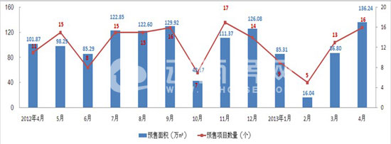 本月預售供應創(chuàng)新高,以136.24萬方體量傲視2013年。