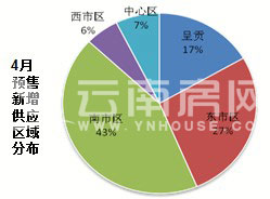 4月昆明預售發(fā)放大幅增長,發(fā)放多、體量大是本月新增供應的特點。