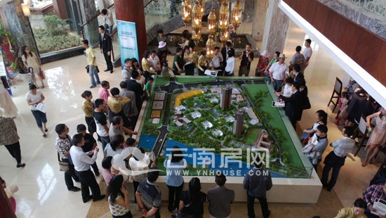 營銷體驗中心開放典禮結(jié)束后,8名超模帶領購房者去營銷中心參觀,營銷中心沙盤站滿了購房者,在會員辦理中心,許多購房者排起長長的隊等待辦理。