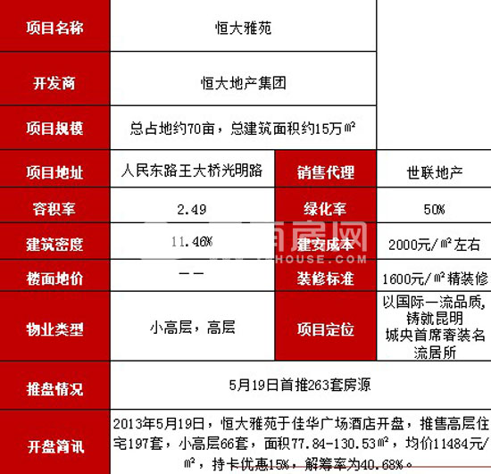 恒大雅苑開盤分析:均價11484元/平米 銷售率40.68%